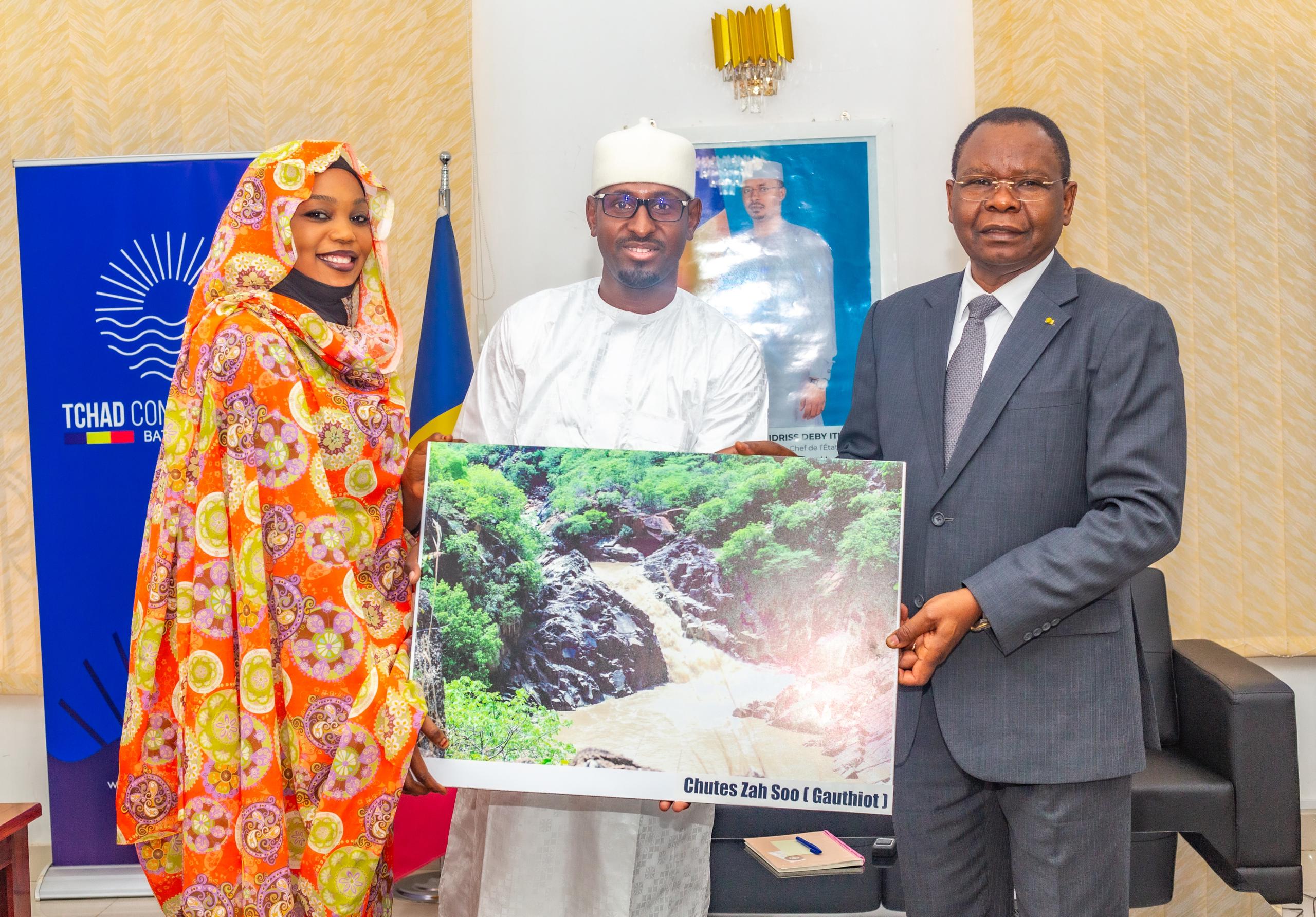 En signe de reconnaissance, deux tableaux artistiques représentant des sites explorés lors des randonnées ont été offerts au chef du gouvernement, symbolisant la richesse naturelle et touristique du Tchad.